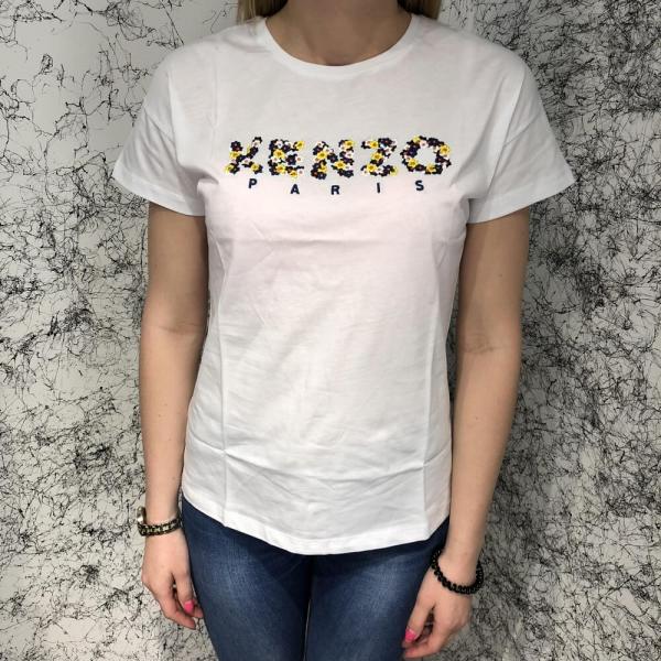 Kenzo T-Shirt Flowers Logo Embroidered White