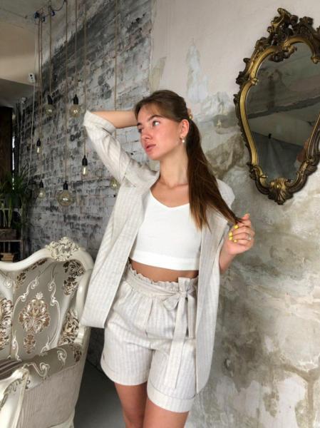 Женский костюм лён белый - цена 1250 грн./шт. - Купить, (Одежда)Костюм лён - девочки будут в восторге от этого комплекта! Размерный ряд: S/M/L РАЗМЕРНАЯ СЕТКА : Талия. Бёдра. S. 64-70. 90-95 до 98см M 70-79. 95-100 L. 79-87 105-110 Характеристики