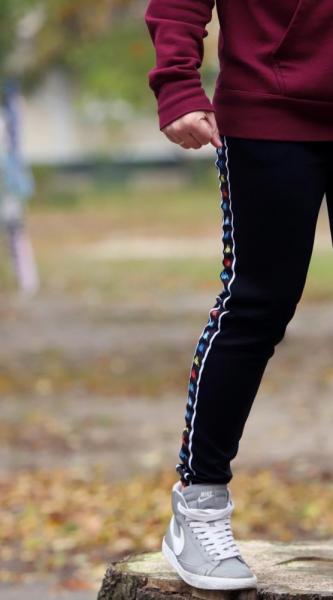 Штаны Kappa черные с цветным лампасом - цена 425 грн./шт. - Купить, (Одежда)Данная модель идет как узкачи, всеми любимые приталенные штанишки. Лампас выполнен абсолютно как в оригинале. - Резинка в поясе - резинки на манжетах внизу - эластичная ткань Замеры : S-ka Длина 91см Полуобхват пояса min31-max44см Полуобхват ляшки 24см М-ka Длина 94см Полуобхват пояса min33-max46см Полуобхват ляшки 25см L-ka Длина 96см Полуобхват пояса min35-max48см Полуобхват ляшки 26см XL-ka Длина 98см Полуобхват пояса min36-max49см Полуобхват ляшки 27см Характеристики