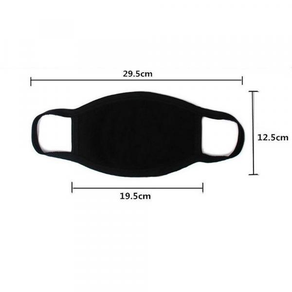 Маски черные многоразовые В упаковке 2 маски! Материал : 100% хлопок Цвет : чёрный Особенности: - плотно прилегает к лицу - не мешает дыханию - не вызывает аллергии - боковые лямки надежно поддерживают маску Размер: высота 12,5 см длина маски 19,5 см длина маски с боковыми лямками 29,5 см Характеристики